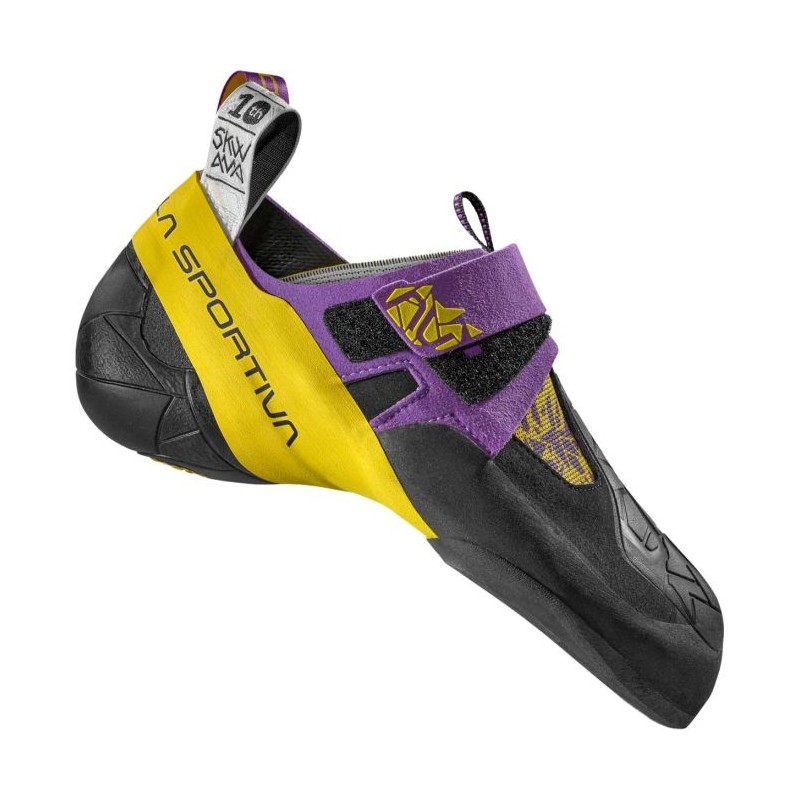 La Sportiva Skwama nella sua nuova colorazione Purple/Yellow è una scarpetta performante di La Sportiva, eccezionale su pareti in strapiombo e perfetta per i passaggi su placca. Ispirata alla pelle squamosa dei serpenti, la Skwama porta la sensibilità e la precisione di arrampicata ad un altro livello anche grazie al supporto plantare P3 e alla tecnologia XsGrip2.
